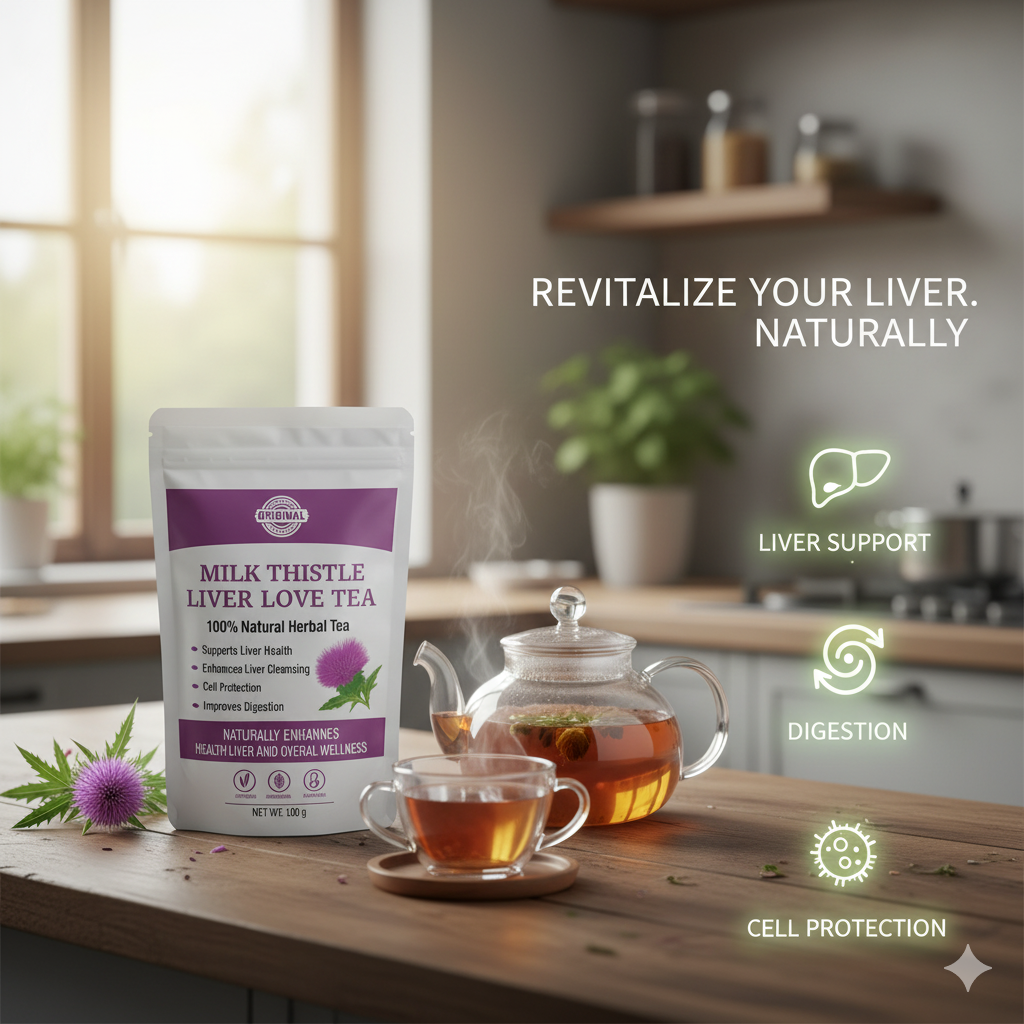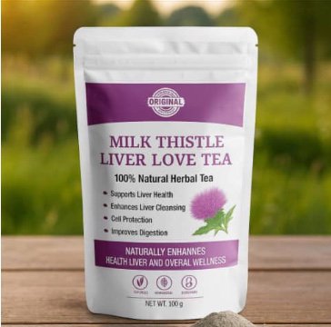 منتج طبيعي 100%، عبوة مغلقة فيها مسحوق ناعم من نبات حليب الشوك النقي، معروف بسيليمارين — مادة تنظّف الكبد من السموم، وتعاونه يخدم صح… باش يخف الخمول، ويتنظّم السكر.
